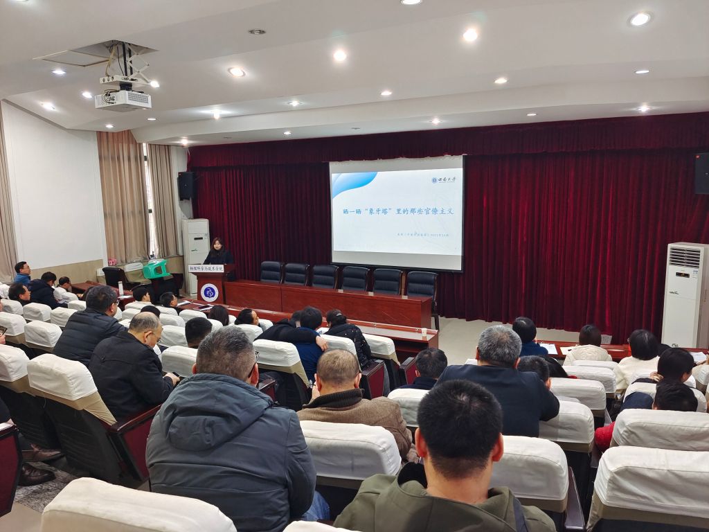 集中学习会上,学院党委副书记、纪委书记刘汭雪领学了习近平关于力戒形式主义官僚主义重要论述及《晒一晒“象牙塔”里的那些官僚主义》。