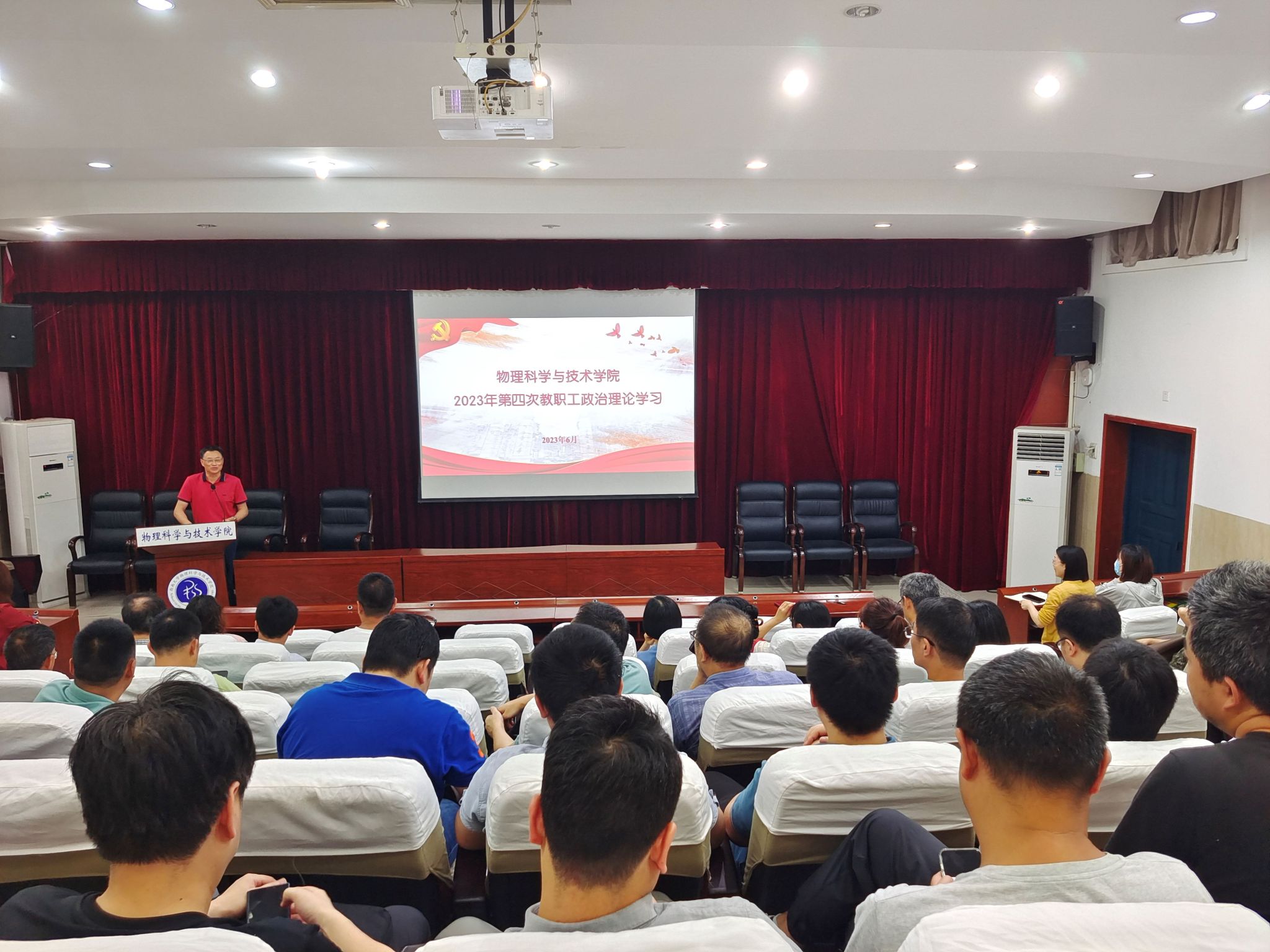 李余廷书记首先带领大家学习了习近平总书记在听取陕西省委和省政府工作后发表的重要讲话精神。他指出,习近平总书记的重要讲话,深刻阐明“以学增智”的丰富内涵,鲜明提出了党员干部在主题教育中进一步提升政治能力、思维能力、实践能力的任务要求,为推动学习贯彻习近平新时代中国特色社会主义思想主题教育走深走实提供了思想和行动指南。李书记强调,要深刻学习领会习近平总书记治国理政的领导方法、思想方法、工作方法,把“六个必须坚持”的内涵要求领会深、领会透,切实提高战略思维、辩证思维、系统思维、创新思维、历史思维、法治思维和底线思维能力,进一步把思想和行动统一到习近平总书记的重要讲话精神上来,自觉践行习近平新时代中国特色社会主义思想,从党的科学理论中悟规律、明方向、学方法、增智慧,把看家本领、兴党本领、强国本领学到手,为推动中国式现代化取得新进展新突破贡献西大物理人的力量。