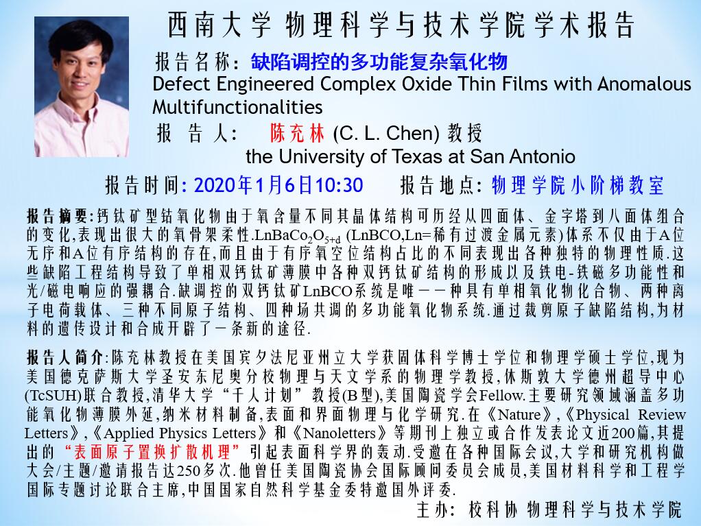 学术报告:美国德克萨斯州立大学 陈充林教授