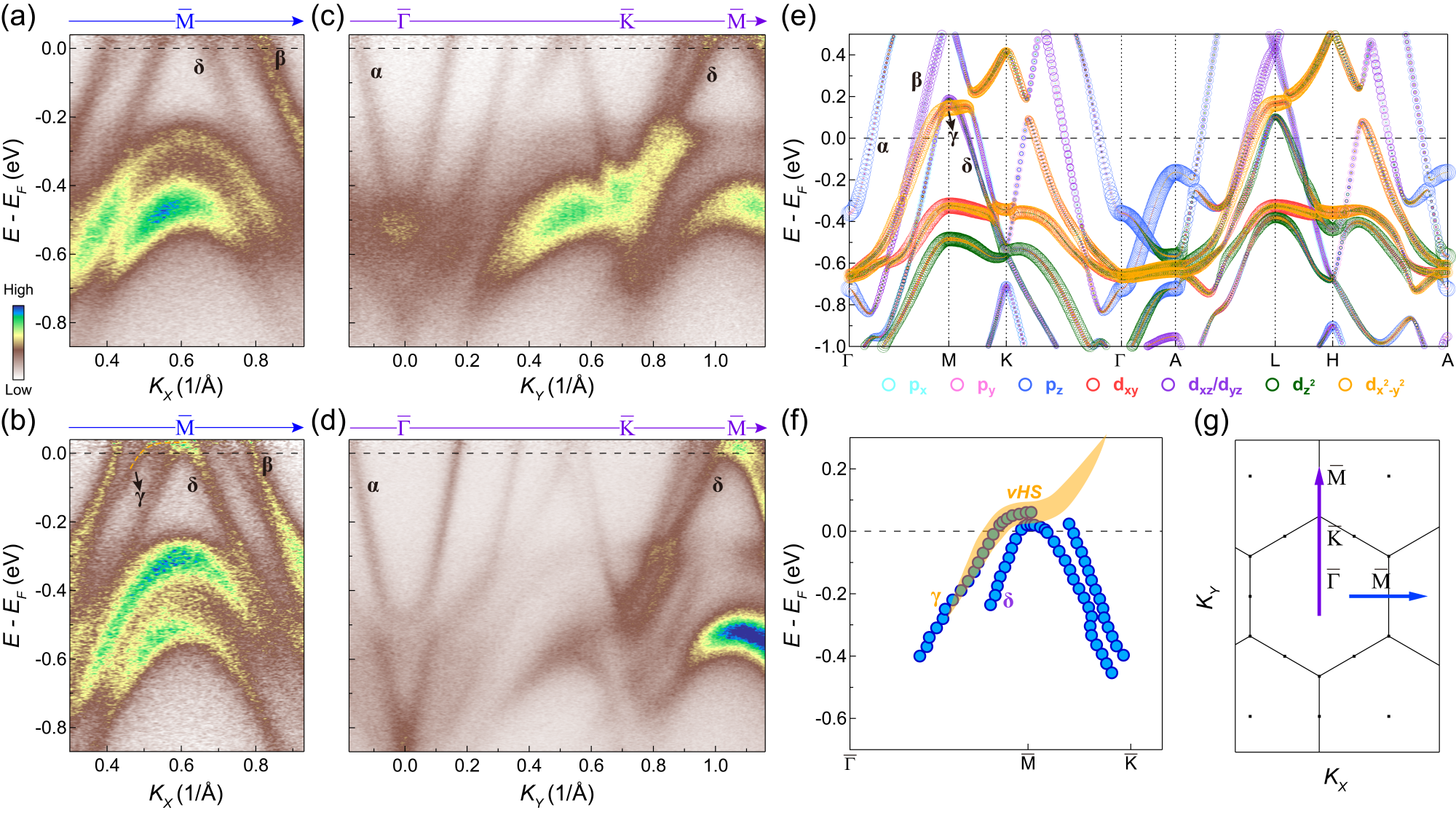 在此情况下,研究人员发现,即使把范霍夫奇点调至费米能级附近引入电子不稳定性,依然无法使CsTi3Bi5中出现电荷密度波的能隙。因此,电子不稳定性自身无法在该材料体系中导致电荷密度波的出现。第一性原理计算进一步表明,在从CsV3Sb5到CsTi3Bi5的演化过程中,电荷密度波的出现直接对应于体系总能量的变化。只有在电荷密度波所对应的晶体结构具有最低的总能量时,电荷密度波相变才会发生。因此,晶格不稳定性对于笼目金属中电荷密度波相变的发生起着重要作用。当然,材料中的电子关联作用与电荷密度波态中的各种奇异现象可能密切相关。此外,研究人员还通过低温X射线衍射和不同偏振的角分辨光电子能谱测量,对该体系中可能存在的电子向列相的成因进行了探索。