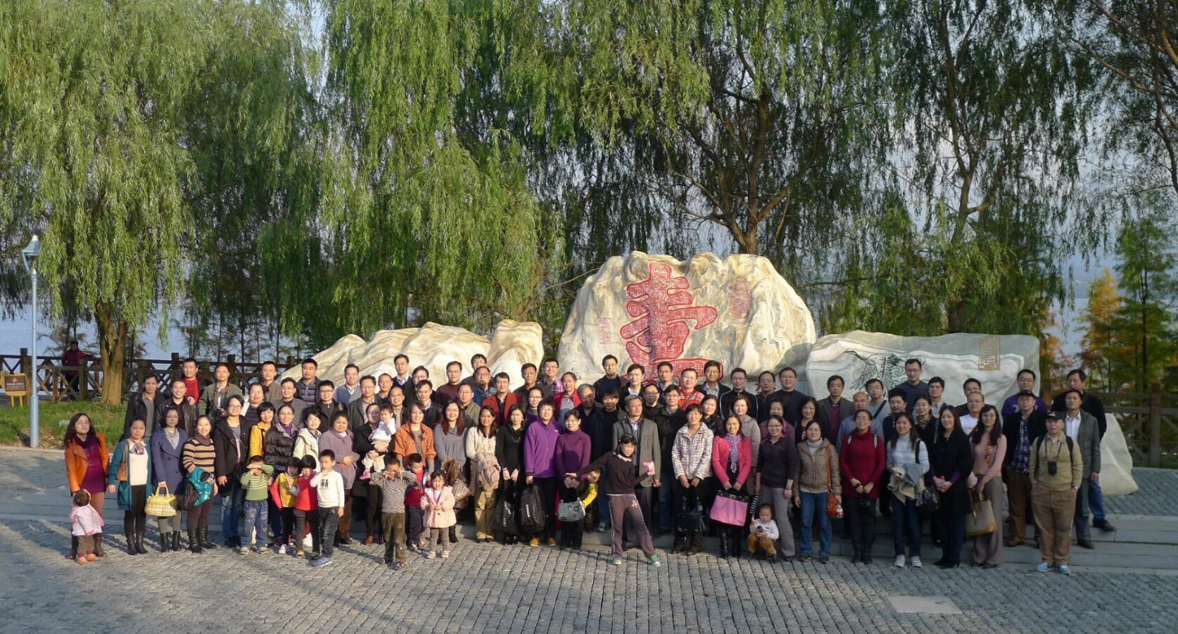 2012年11月,学院工会组织会员前往长寿湖参观合影。