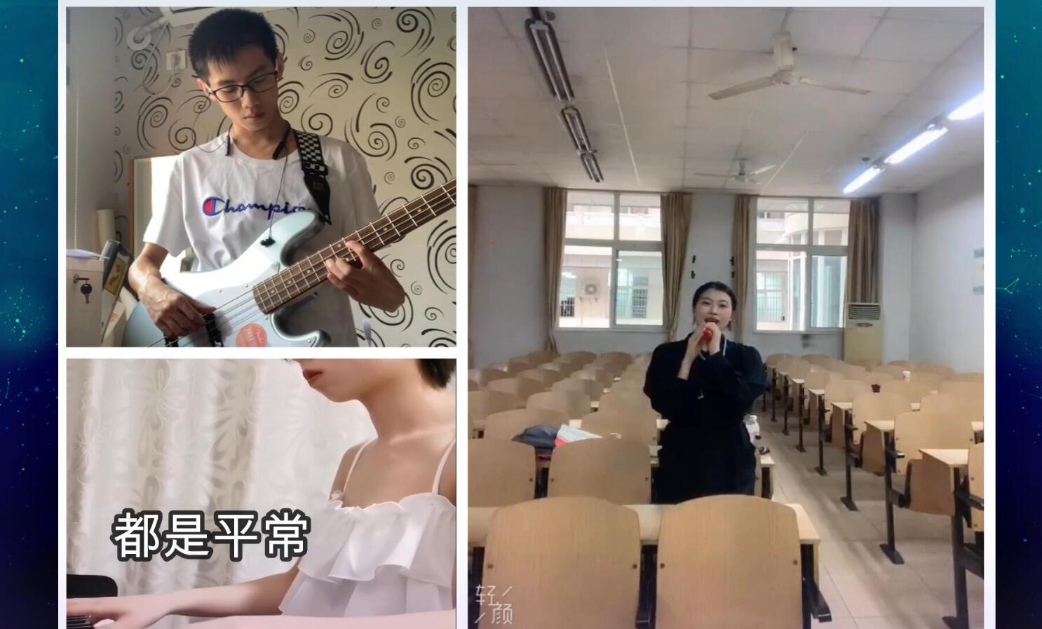 值得一提的是,同学们根据时代背景和自身经历编排了战疫和网课等特别节目。弹唱《只要平凡》致敬了在新冠肺炎疫情期间平凡而伟大的中国人民;小品《网课风云》则展现了“停课不停学”期间宅家云学习的新鲜事,将第二篇章的气氛推向了高潮。师生合唱《亲爱的我们》成为第三篇章中人气最高的节目,参演师生身处各地,虽不同场景,但同一心境,共同吟唱青春的告白。