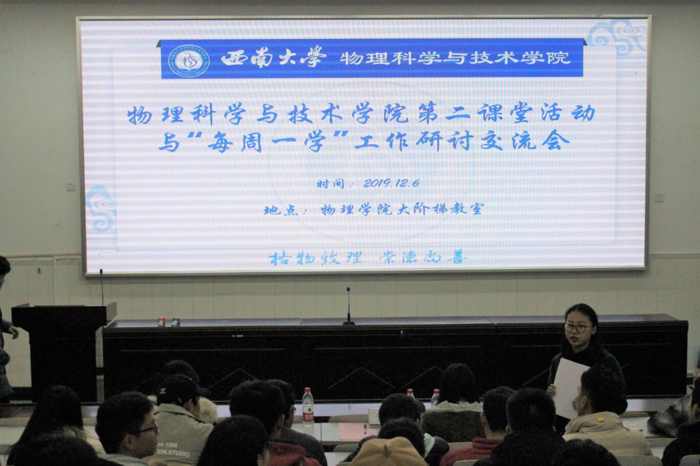 来自2019-2017级的三名班级代表先后分享了开展“每周一学”、组织班会和主题团日活动的具体做法和经验。2017级师范2班团支书宋文燕同学,以参与西南大学2019年团日微活动示范项目并获评二等奖的工作经历为例,从如何提升班级成员参与度、获得感的角度提出了“合理安排时间、以小见大策划主题、加强形式创新、善用新媒体宣传总结”等建议,给大家诸多启发。