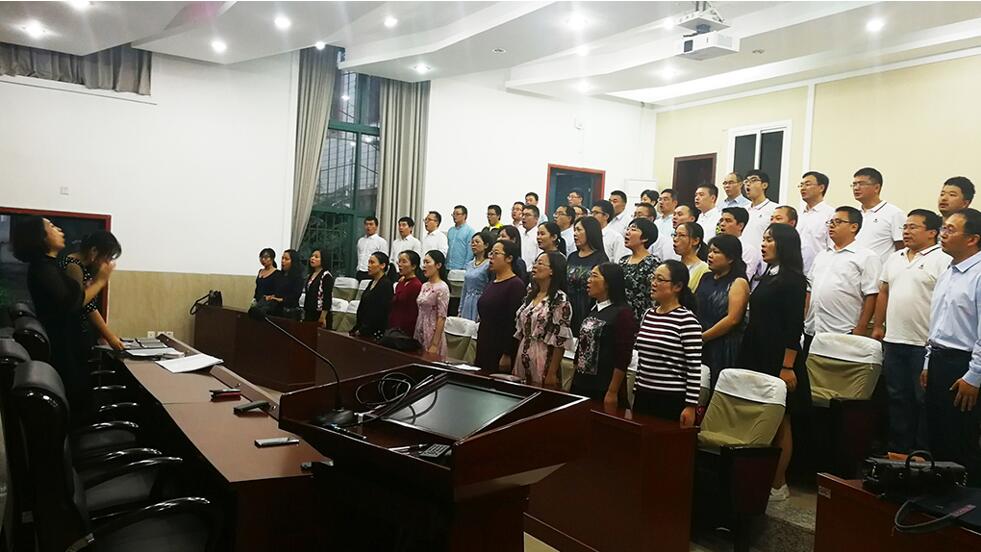 今年是新中国成立70周年,为了隆重庆祝这一党和国家的喜事盛事,学院组织开展了一系列活动,参加学校教职工合唱比赛是其中重头戏之一。学院党政和工会非常重视这次教职工合唱比赛,本学期开学第一天就组织合唱团成员开始集中排练。在音乐学院谢梅梅老师的精心指导下,50多位老师分为四个声部,通过近十次集中训练,逐步进入到了比赛状态。