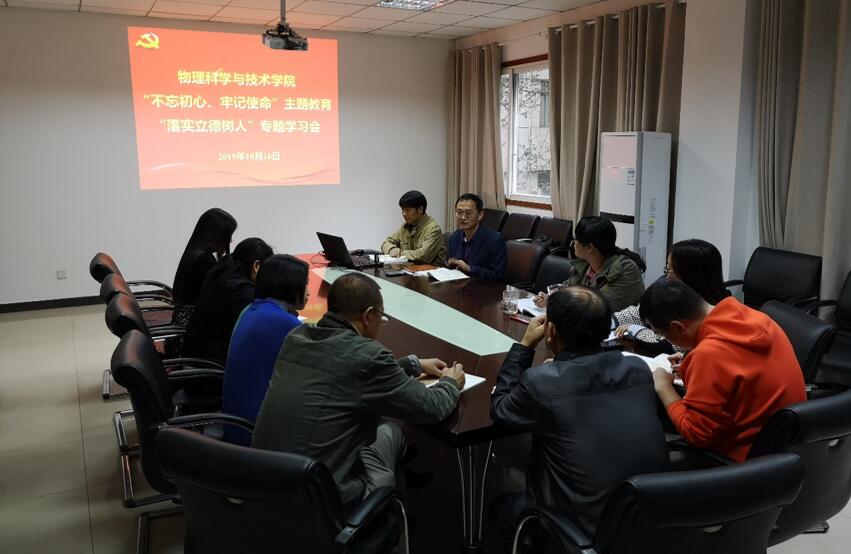 为深入学习贯彻习近平新时代中国特色社会主义思想,扎实推进 “不忘初心、牢记使命”主题教育落到实处, 10月16日下午,学院领导班子在二楼会议室开展 “落实立德树人”专题学习研讨。党委书记李建光主持学习。