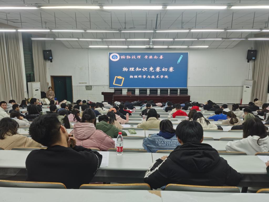 12月12日下午,学院“博学笃志 千帆竞发”物理学科素养赋能计划之物理知识竞赛决赛在学院大阶梯教室如期举行。学院副院长赵建伟副教授,学院创新创业发展中心主任、高级实验师谭兴文老师,学院基础物理教研室主任桑文龙副教授应邀担任评委。学院院长吴正茂教授,院团委书记贺颖老师,来自2021级、2020级的15名参赛选手和各年级学生代表共计一百余人来到了决赛现场。