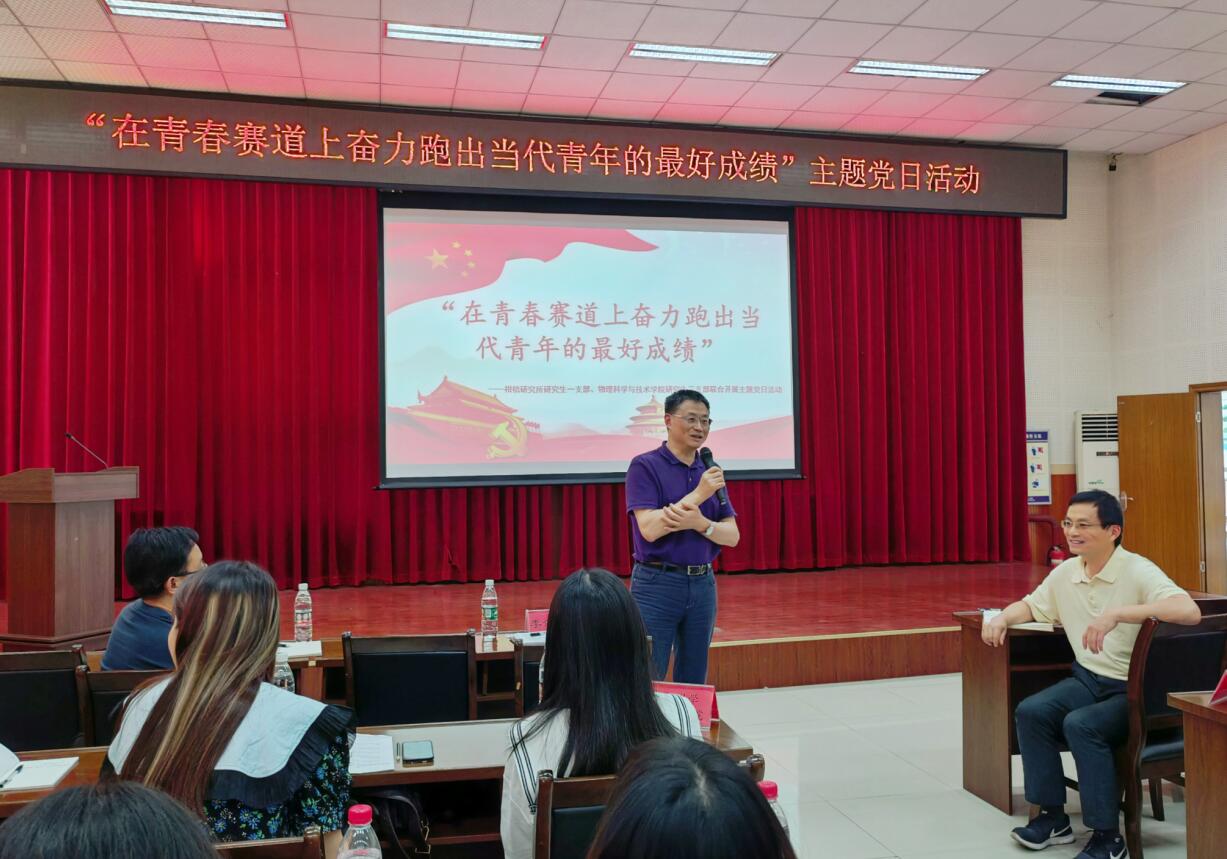 活动中,欧冠研究生第三党支部党员唐卉和柑桔研究所研究生第一支部党员徐媛媛分别就自己的学科专业特色、研究方向进行分享交流,在轻松有趣的氛围中,大家对理论物理学科和柑桔产业有了更深入的认识,达到了研究手段和思维方式彼此借鉴和融合的效果。