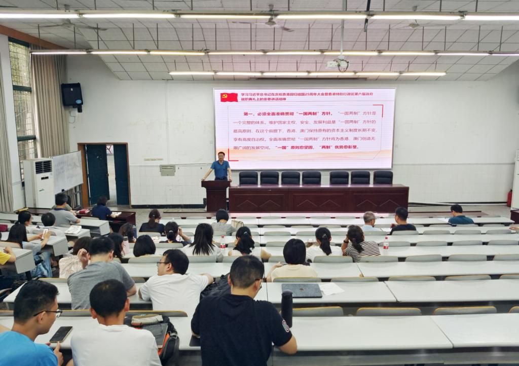 7月8日下午,学院在大阶梯教室举行2022年第六次教职工政治理论学习会。学习会由学院党委书记李余廷主持,学院全体教职工参加了此次学习。