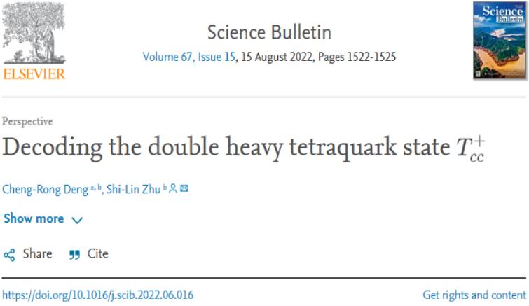 近日,欧冠强子物理团队邓成荣教授在新强子态领域取得重要研究进展,相关成果《Decoding the double heavy tetraquark state Tcc》[1]发表在中国卓越计划领军期刊Science Bulletin。Science Bulletin是由中国科学院和国家自然科学基金委员会共同创办的自然科学综合类刊物,(2022年发布的影响因子为20.557),位于中科院JCR分区升级版综合类期刊一区(61本期刊排名第7)。 该成果第一完成单位为西南大学,邓成荣教授为第一作者,北京大学朱世琳教授为通讯作者。