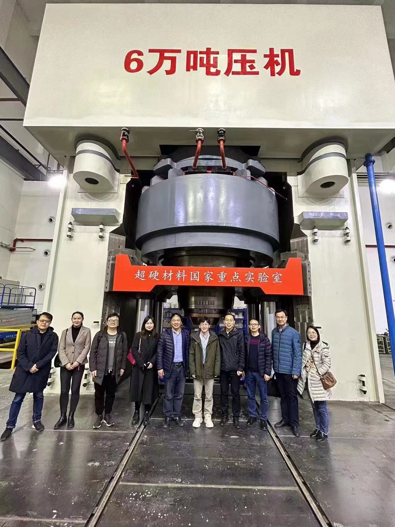 4月21日上午,学院一行前往吉林大学物理学院学习调研。在吉林大学物理学院副院长杨景及超硬材料国家重点实验室、综合极端条件高压科学中心副主任刘兆东陪同下,调研组一行首先实地考察了六万吨大压机装置、综合极端条件高压科学中心等国家重大科研平台,深入了解他们立足“四个面向”开展科研工作的情况及取得的成绩。