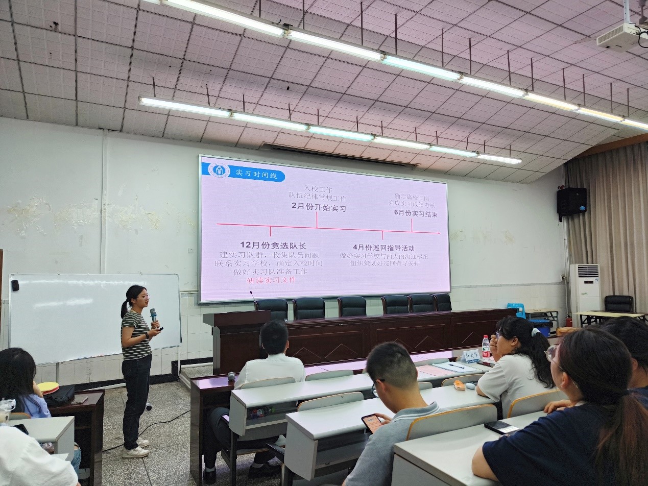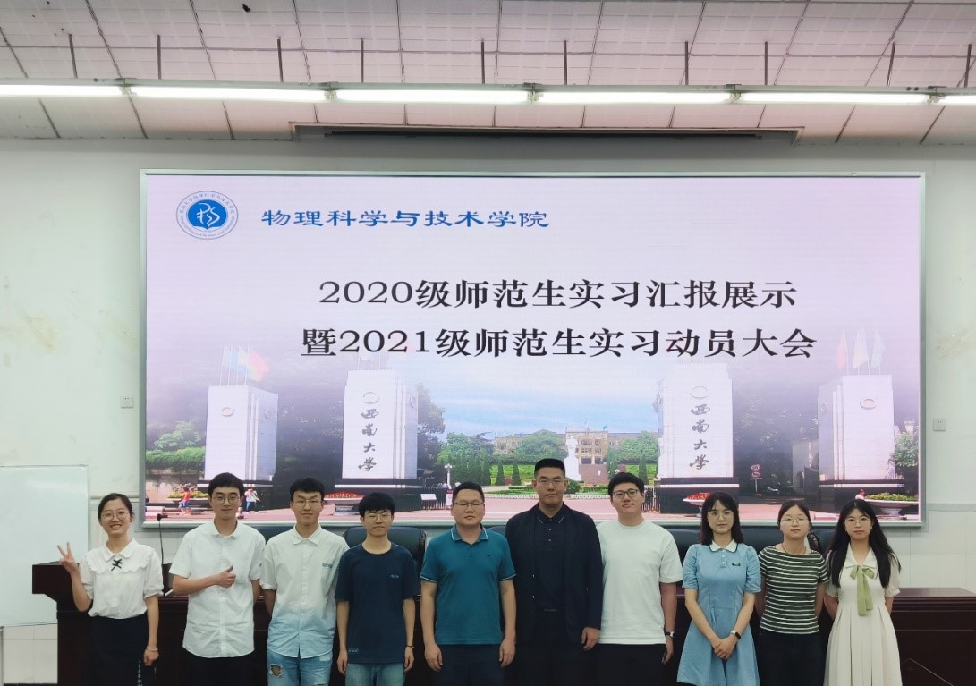 2023年6月29日,学院2020级师范生实习汇报会在物理学院大阶梯教室举行,学院院长吴正茂教授、教师教育学院张学斌书记、李世讴副院长、李太华副教授以及2021级辅导员黄文静老师出席活动,2020级师范生代表和2021级全体师范生参会,活动由卢子程同学主持。