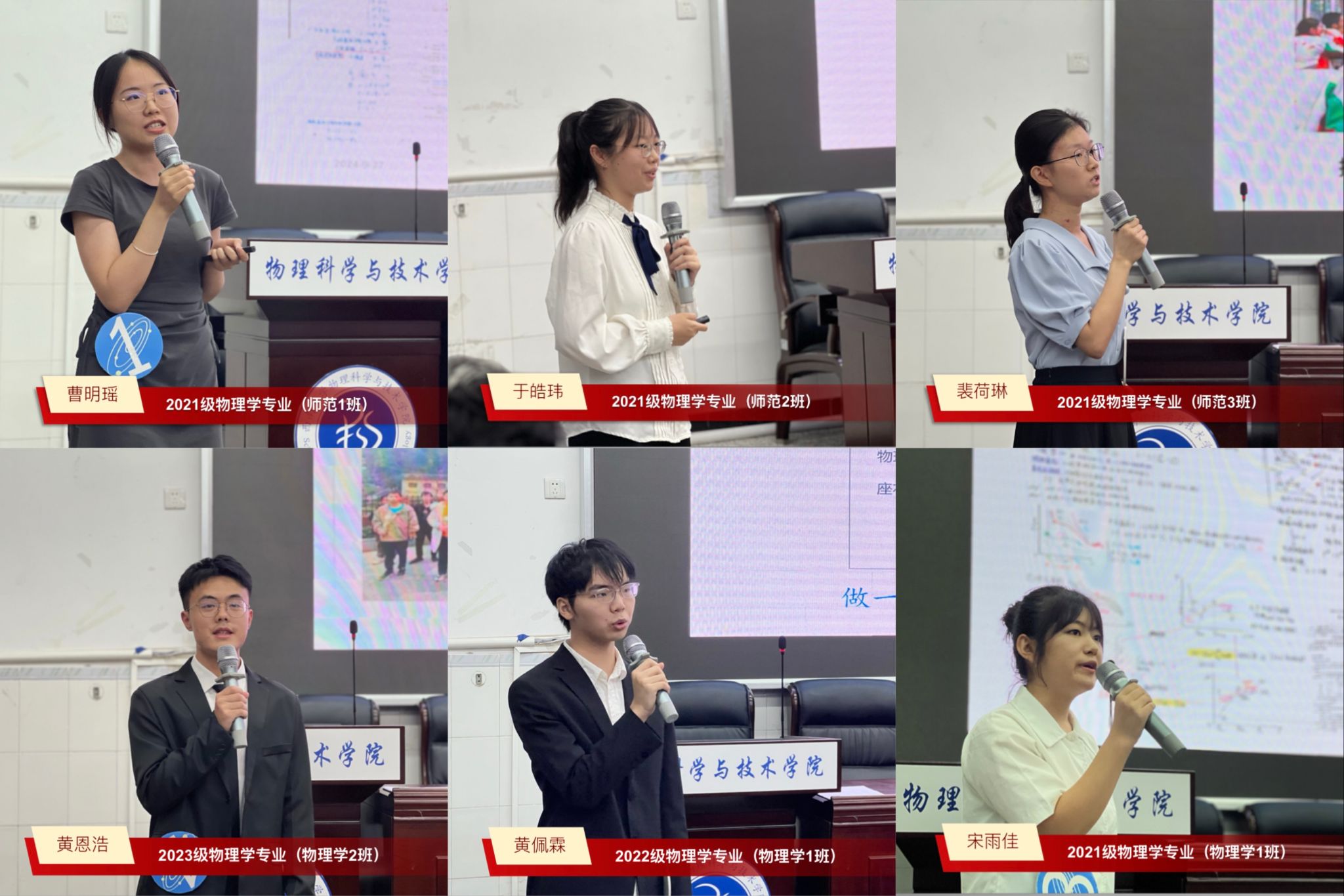 活动现场掌声雷动,氛围热烈。12名选手自信满满,汇报内容既有深入的专业研究展示,也有丰富的社会实践经历,充分展现了物院学子勤奋进取、卓越出众的专业能力和综合素养。