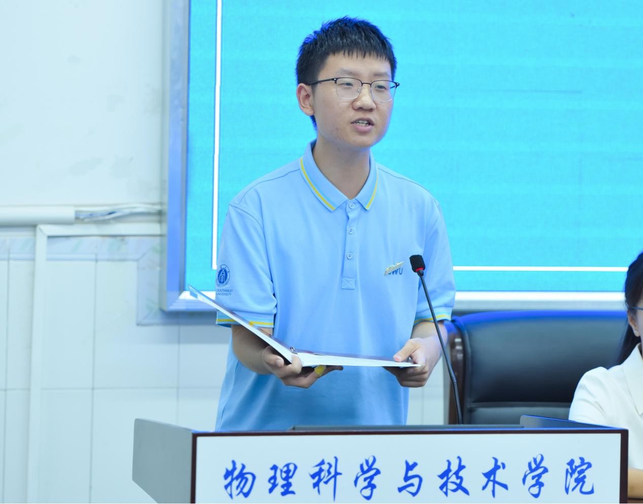 吴正茂院长在致辞中欢迎新生加入,介绍学院发展情况,鼓励同学们夯实专业基础、勇于探索尝试、胸怀家国天下,将个人成长融入国家发展大局,成长为自信温暖、有担当的优秀青年。教师代表严茂俊老师结合自身求学与科研经历,建议新生培养“物理直觉”,通过广泛阅读与深入思考,将知识转化为实践力量,书写精彩人生篇章。2023级本科生段钰琳以“原点”“刻度”“方向”为关键词分享成长体会,建议新生找准定位、细化目标、与国同行。2025级物理学专业田展钼同学作为新生代表发言,讲述与物理结缘的故事,承诺将恪守院训、奋发向上。2025级师范5班戴嘉怡带领全体新生庄严宣誓,承诺恪守“格物致理、崇德尚善”的院训,勇攀知识高峰,践行家国使命。