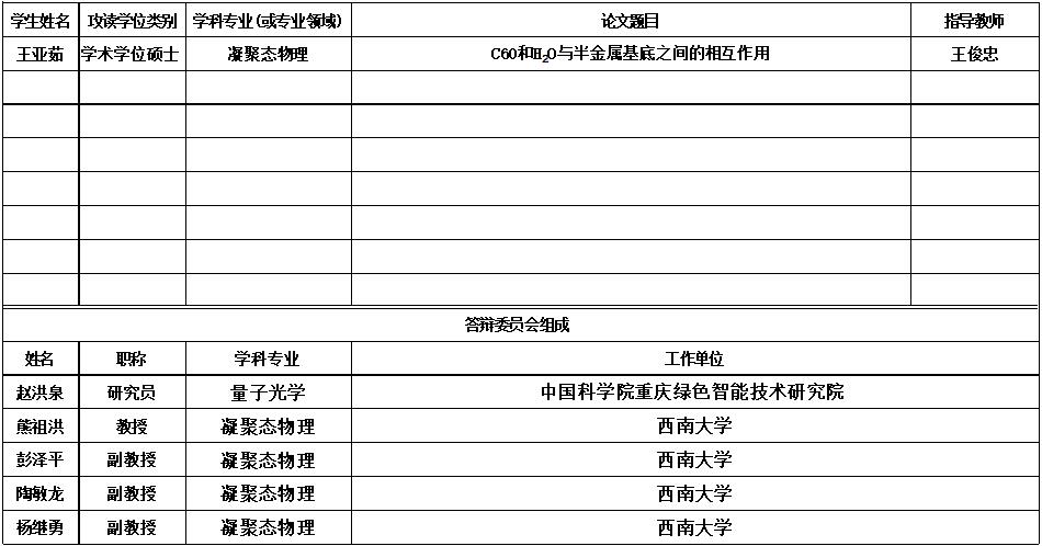 学院凝聚态物理2021年秋季学期学位论文答辩安排公告