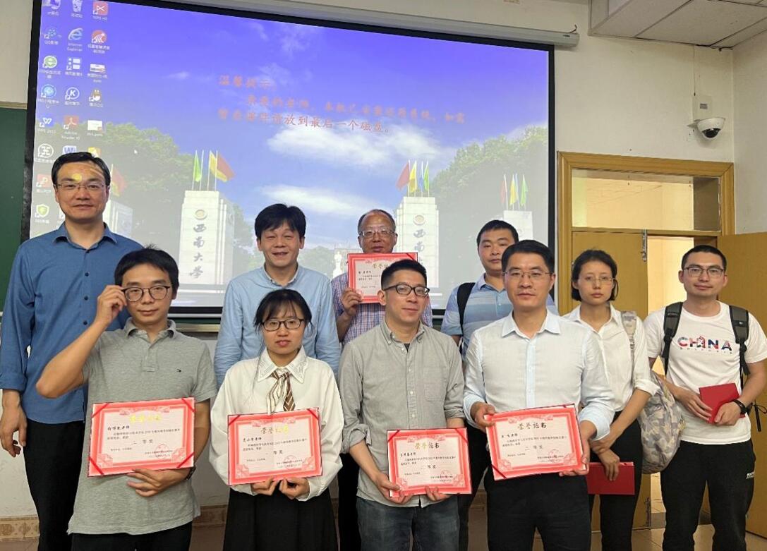 经过评委综合评定,范小华老师获得本届学院讲课比赛一等奖,王飞、匡泯泉、张博凯老师获得二等奖,王丹丹、王鹏、周廷伟、张勇等4位老师获得三等奖。吴正茂院长宣布了比赛结果,并为获奖老师颁发荣誉证书,学院择优推荐教师代表学院参加西南大学教学创新大赛。