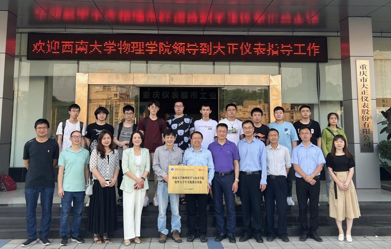 为深入推进校企合作、产教融合,进一步提升物理专业人才培养质量,同时也为了进一步推进毕业生就业工作,5月6日,学院全体领导班子到重庆市大正仪表股份有限公司参观交流,举行了“西南大学校外大学生综合性实践教育基地”授牌仪式。大正仪表股份有限公司周洪琴董事长陪同大家参观了大正仪表股份有限公司的生产厂房,周总还详细地给大家介绍了公司的发展历程以及主要产品。