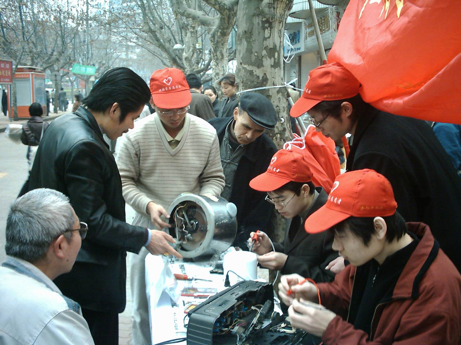 “我们服务从来不收一分钱,有的时候需要更换一些零件,也是老师们自己倒贴钱。”罗世全说,当时大家外出统一戴红帽子、穿红马甲,主要是为了遮挡户外的太阳,好辨认、好管理。 因为“学雷锋服务小组”技术好,深受社区居民欢迎。后来,社区居民一看到服务队员出现,就开心地相互传递消息:“ ‘红帽子’来了!‘红帽子’来了!”为了方便服务更多人,当时物理系所在的物理大楼还专门开辟了一块地方,设为家电维修中心。远近市民慕名而来。因为人手不够,罗世全和组员们一起修理家电到半夜两三点是常态。因为修理技术过硬,那时候的名牌“长虹电视” “阿里斯顿冰箱”等,还把那里作为定点维修服务站之一。
