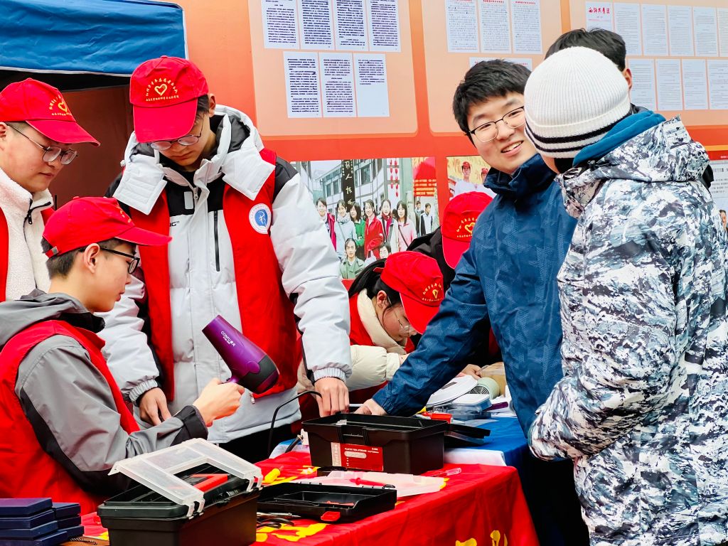 “台灯鼠标吹风机,大学生活三件套,‘红帽子’免费修,志愿服务不打烊,天天都是‘雷锋’样。” 3月1日,在西南大学北区樟树林举行“雷锋精神在西大60年”活动,现场一片热火朝天的景象。该校欧冠官方网站入口“红帽子”青年志愿者服务队的十余名队员,一边仔细检查同学们送来维修的电器,一边提醒大家在宿舍内要规范使用电器,务必注意用电安全。