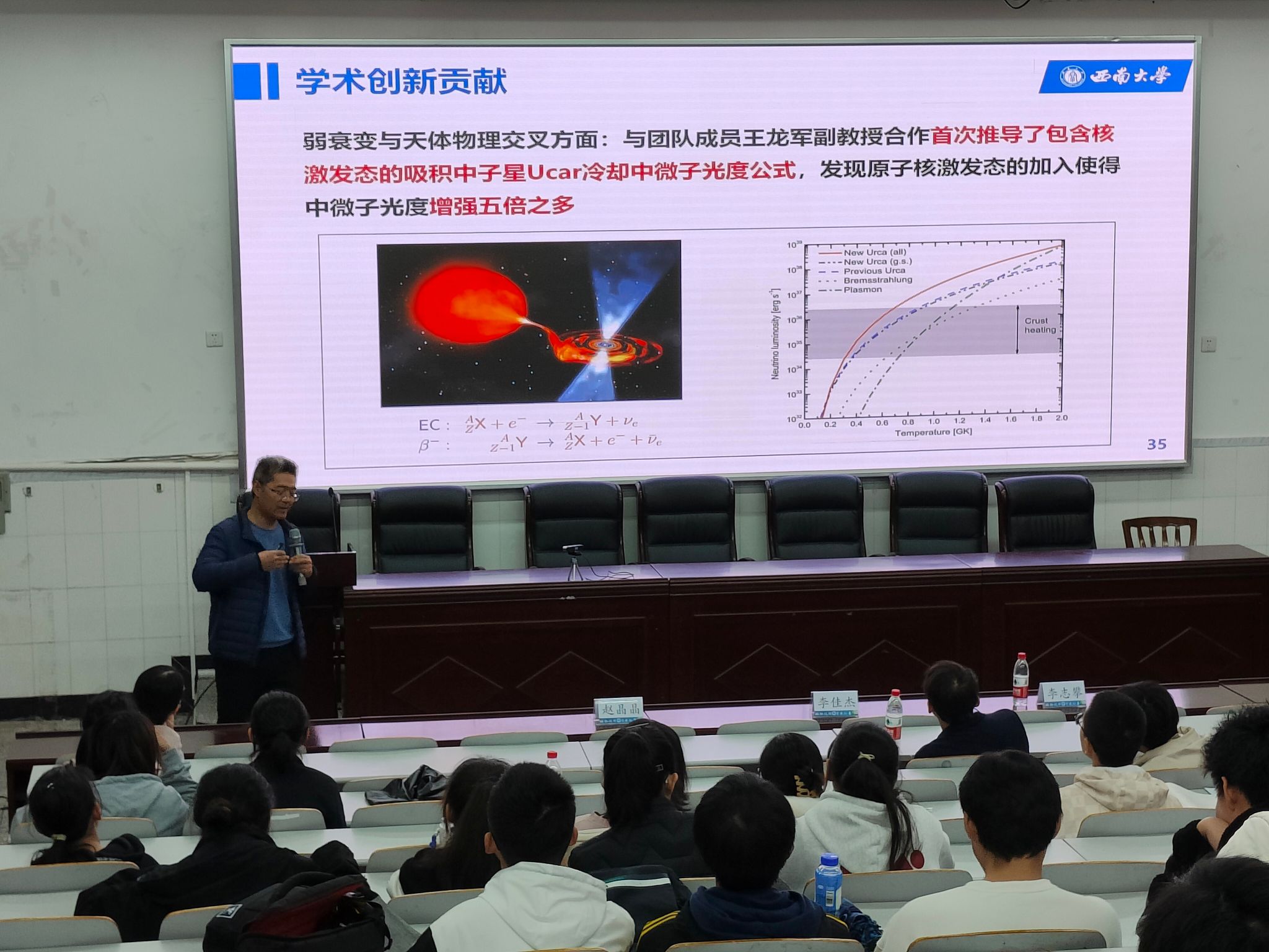 李佳杰老师以“多信使时代致密星物理简介”为题,揭秘了宇宙的起源和演化规律,为大家详细介绍了中子星以及脉冲星的发现,进而引出了核物理和天体物理的最新研究和应用成果。“计划是应对未知和不确定性的最佳工具,能够帮助大家更好地管理时间和资源”,他向同学们强调了计划的重要性。