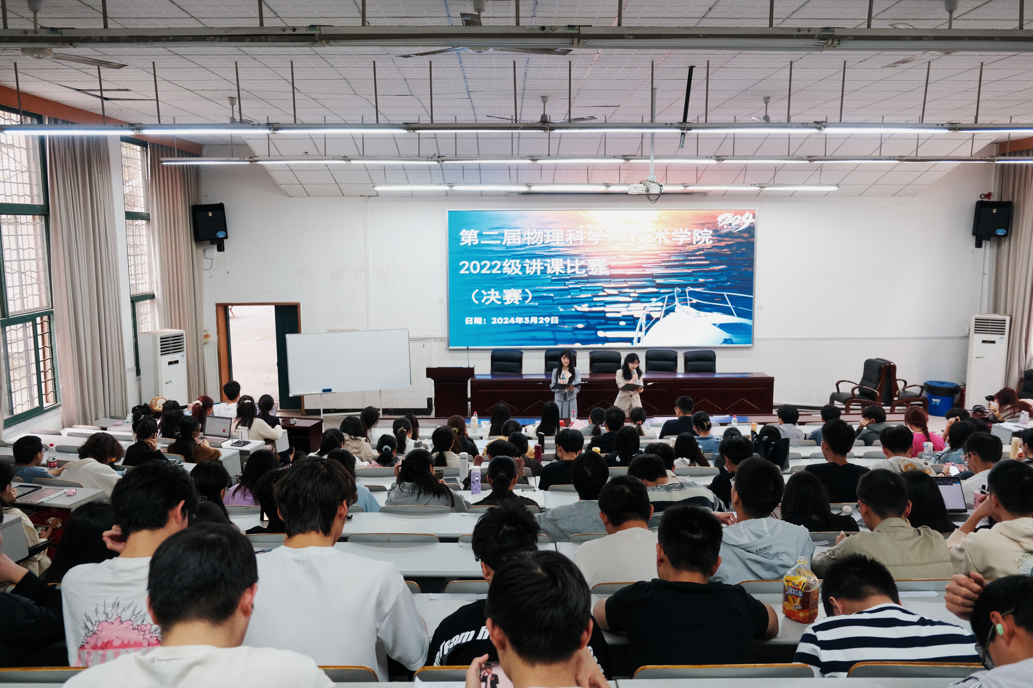 为培养师范生教学技能,提升语言表达能力,搭建“以赛促学、以赛促教”的交流平台,3月29日下午欧冠在物理大楼大阶梯教室举办2022级“第二届教学技能大赛”之讲课比赛决赛。学院2022级辅导员宋佳芮、兼职辅导员张小梅、2020级师范专业黄艳妮、王云韬担任此次决赛评委,2022级全体师范生到场观摩学习。