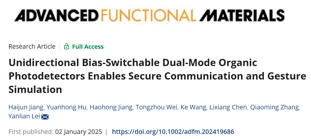 近日,欧冠新型显示与光电感知科研团队雷衍连课题组在多模有机光电探测领域取得最新进展,相关研究成果以题为“Unidirectional Bias-Switchable Dual-Mode Organic Photodetectors Enables Secure Communication and Gesture Simulation” 在国际知名期刊《Advanced Function Materials》(中科院一区TOP,IF:18.5)上在线发表。欧冠2022级硕士研究生蒋海军为该论文的第一作者,雷衍连副教授为通讯作者,欧冠官方网站入口(微纳结构光电子学重庆市重点实验室)为唯一署名单位。