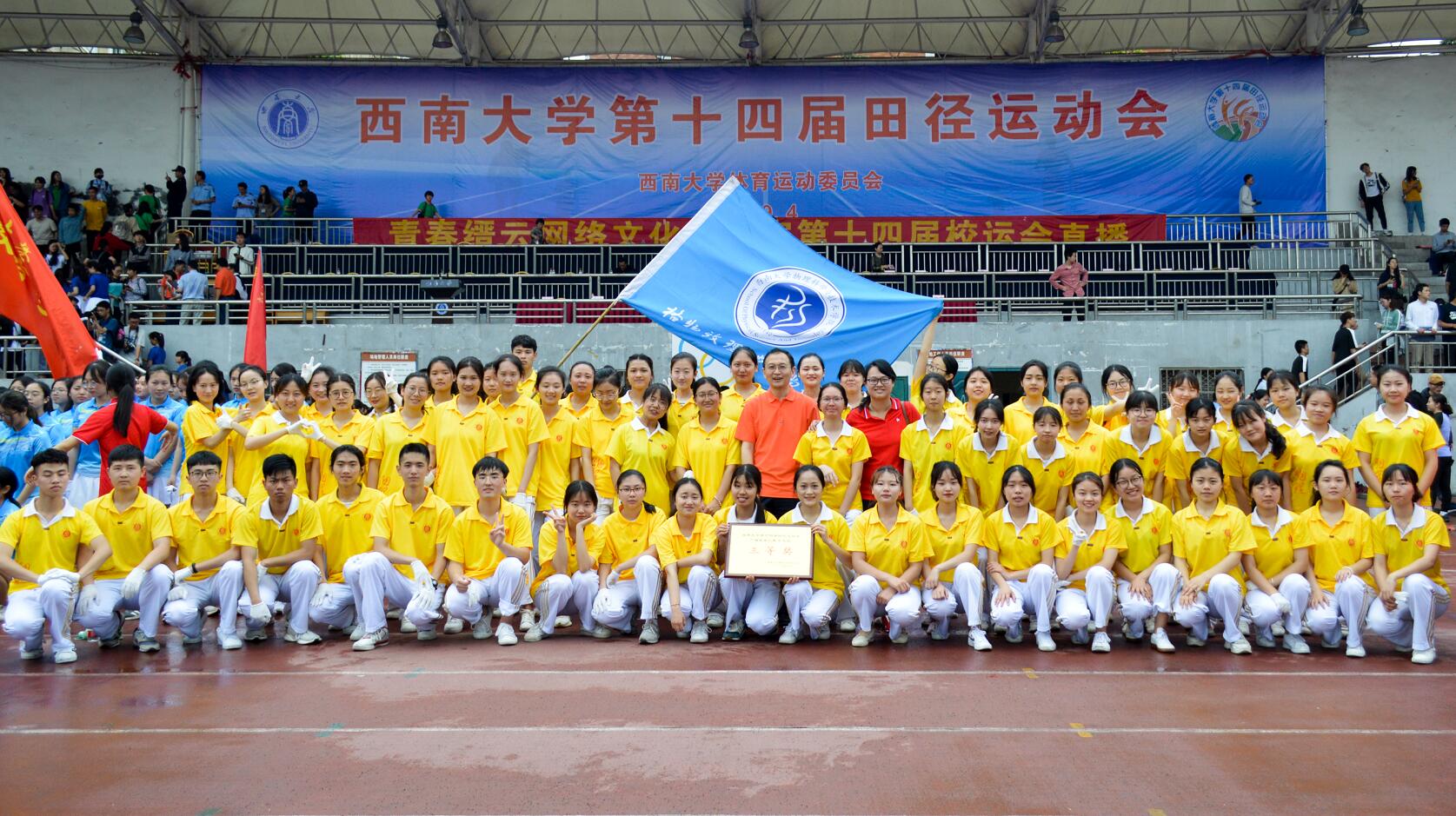 此次校运会,学院共计有113名学生参加了26个单人项目、2个团体项目的比赛,28名教师参加了14个单人项目、9个团体项目的比赛,近两百名学生参与了志愿服务和后勤保障工作。各项赛事陆续展开后,大家热情高涨,学院志愿者和后勤啦啦队在场下全心全意坚守岗位,运动健儿们在场上奋力拼搏、超越自我。沙坑前的每一次起跳,他们目光坚定;跑道上的每一次冲刺,他们永不言弃;团体项目的每一次协作,他们团结一致。运动会的第二天下午,一场大雨突然降落,运动员们发扬体育精神,坚持在雨雾中完成了各项比赛。