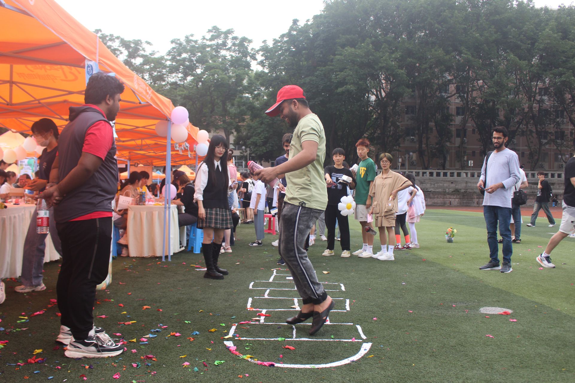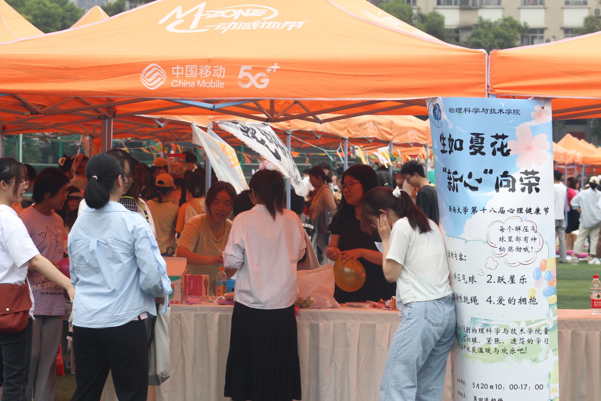 5月20日,学校举行第十八届心理健康节“生如夏花,‘新心’向荣”心灵创意集市活动,精心设计了跳房子、跳大绳等童年趣味活动,来参与游戏的同学络绎不绝,每个人的脸上都洋溢着灿烂的笑容。