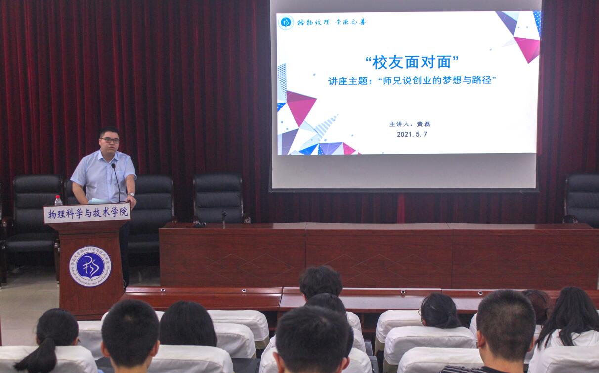 黄经理以“创业的梦想与路径”为主题,围绕未来就业与创业这一核心问题,与各年级物理学班学生进行了面对面的沟通和交流。