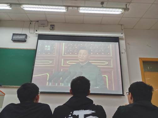 同学们首先观看了七一盛典上习近平总书记的重要讲话视频和天安门城楼前千人献词团的《请党放心,强国有我》青少年献词视频。总书记的话和青少年代表的誓言句句铿锵,激荡在同学们的心头。吴奇同学表示:“从视频中,我感受到了习近平总书记对青少年寄予的厚望,我们青少年在未来应当勇担时代大任,在人民最需要的地方绽放自己的青春之花!”