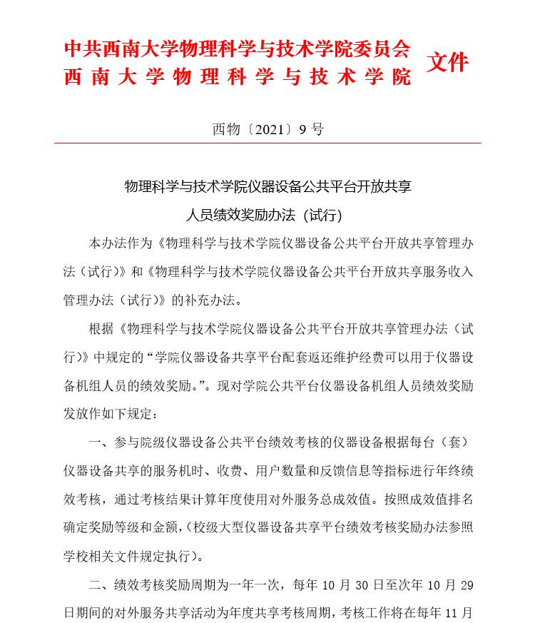 欧冠官方网站入口仪器设备公共平台开放共享人员绩效奖励办法(试行)