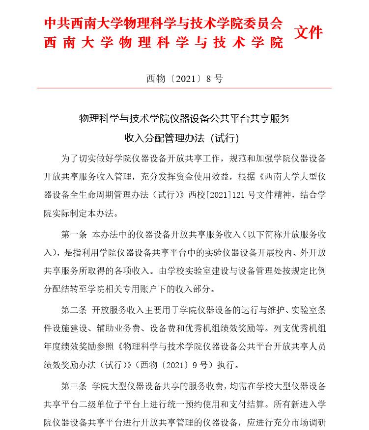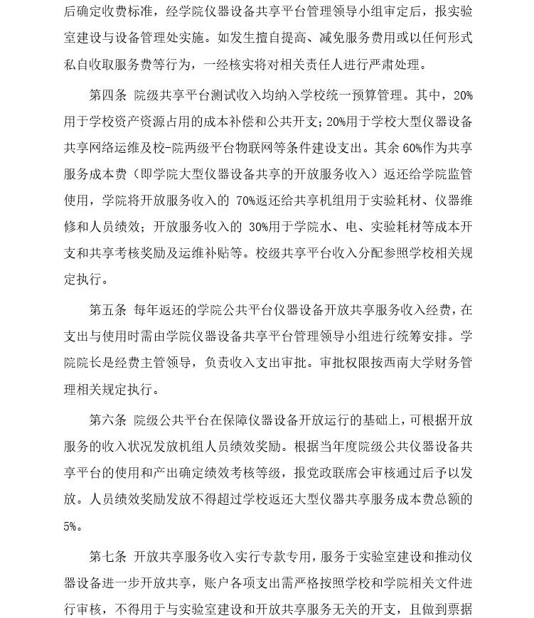 欧冠官方网站入口仪器设备公共平台共享服务收入分配管理办法(试行)