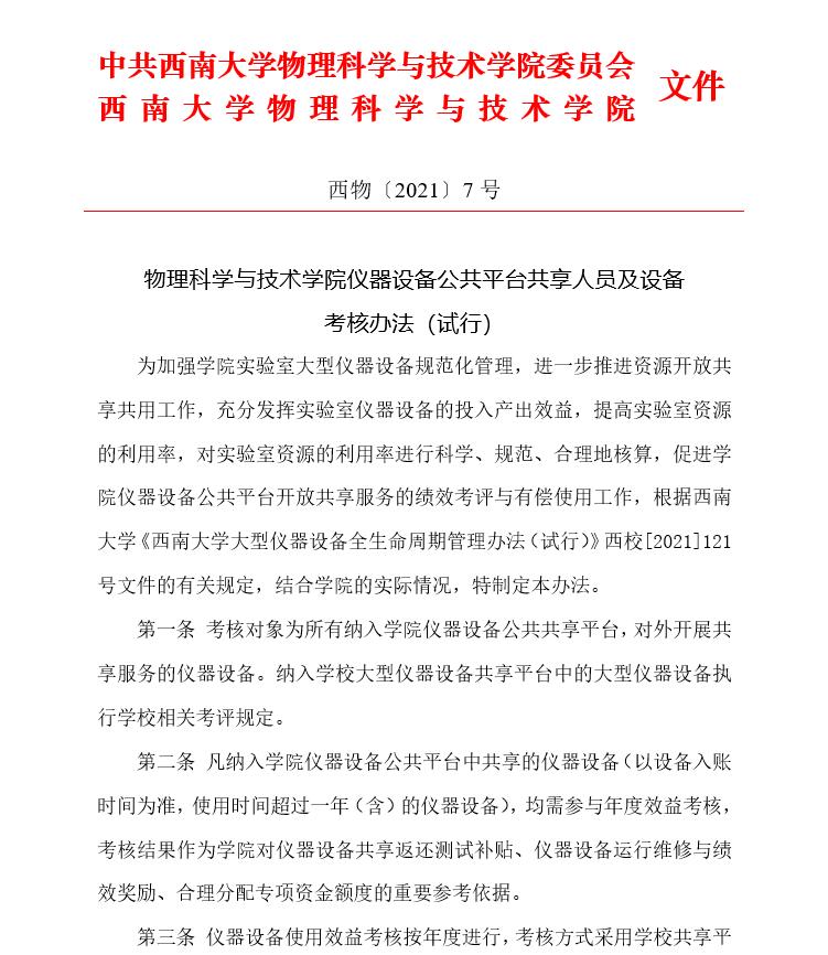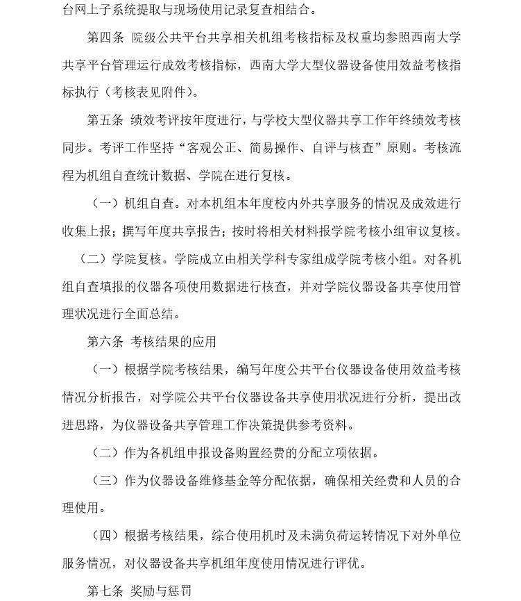 欧冠官方网站入口仪器设备公共平台共享人员及设备考核办法(试行)
