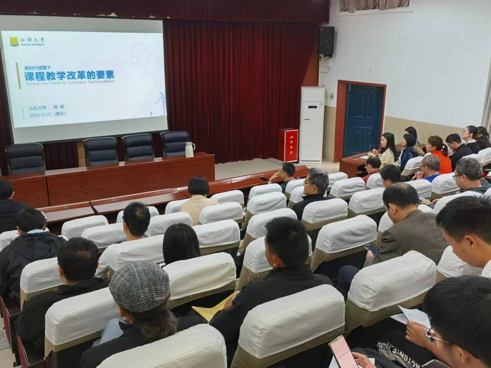 10月28日下午,应欧冠及学校理工科教师发展分中心邀请,汕头大学副校长、中山大学教授、教育部物理类专业教学指导委员会秘书长陈敏莅临欧冠,做了一场题为《新时代背景下课程教学改革的要素》的学术报告。李余廷书记、吴正茂院长、欧冠全体教师及兄弟学院的教师代表参加了报告会,会议由吴正茂院长主持。